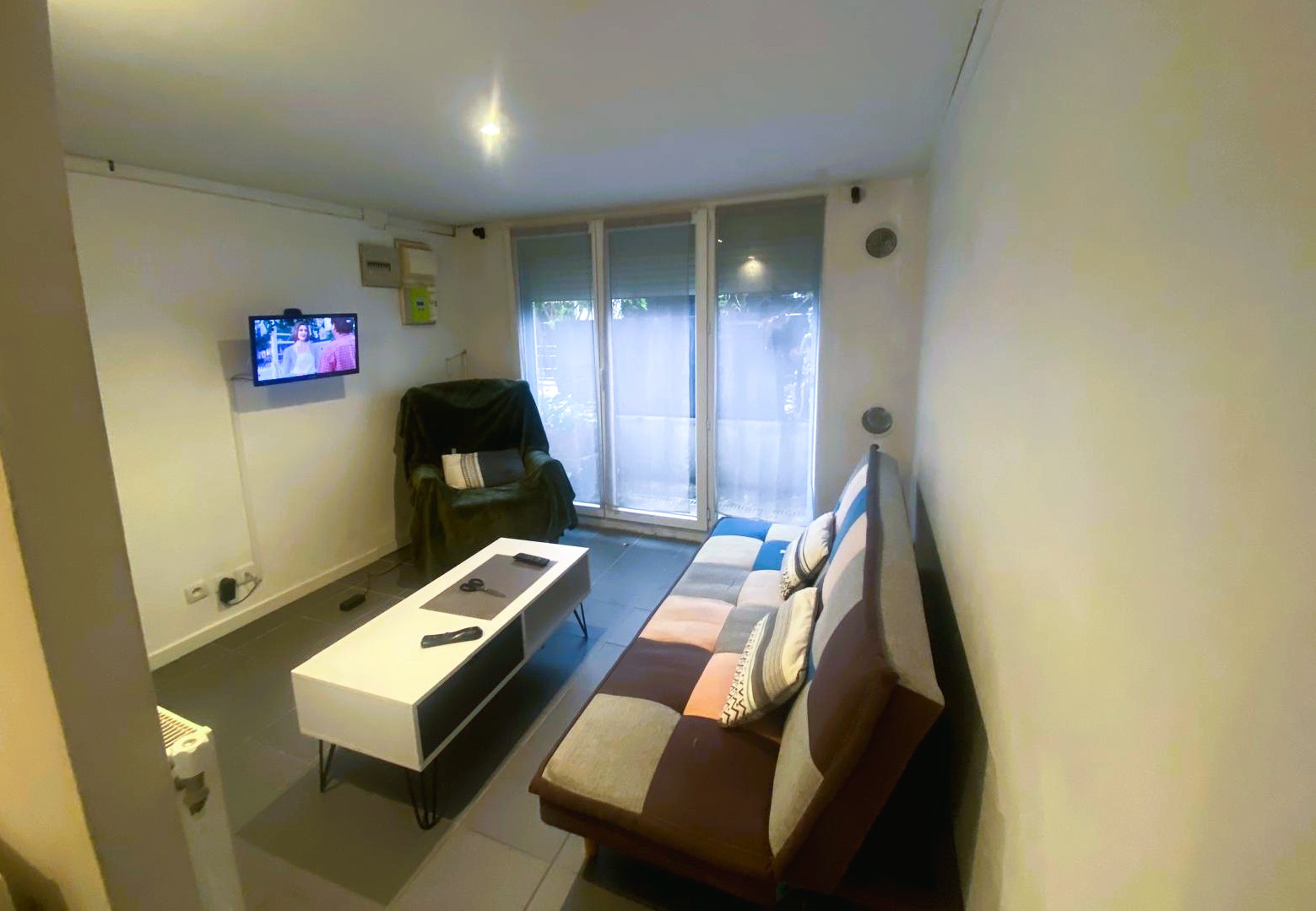 Colombes - Rue Nouvelle - Studio de 25 m2 au rez-de-chaussée d'une maison modère. Composition: Entrée, pièce principale, salle d'eau avec cabinet de toilette, espace cuisine ouvert, un espace nuit. Appartement meublé et équipé d’une machine à laver. Loyer : 590 euros toutes charges comprises (Électricité - Eau chauffage et froide - Wifi).