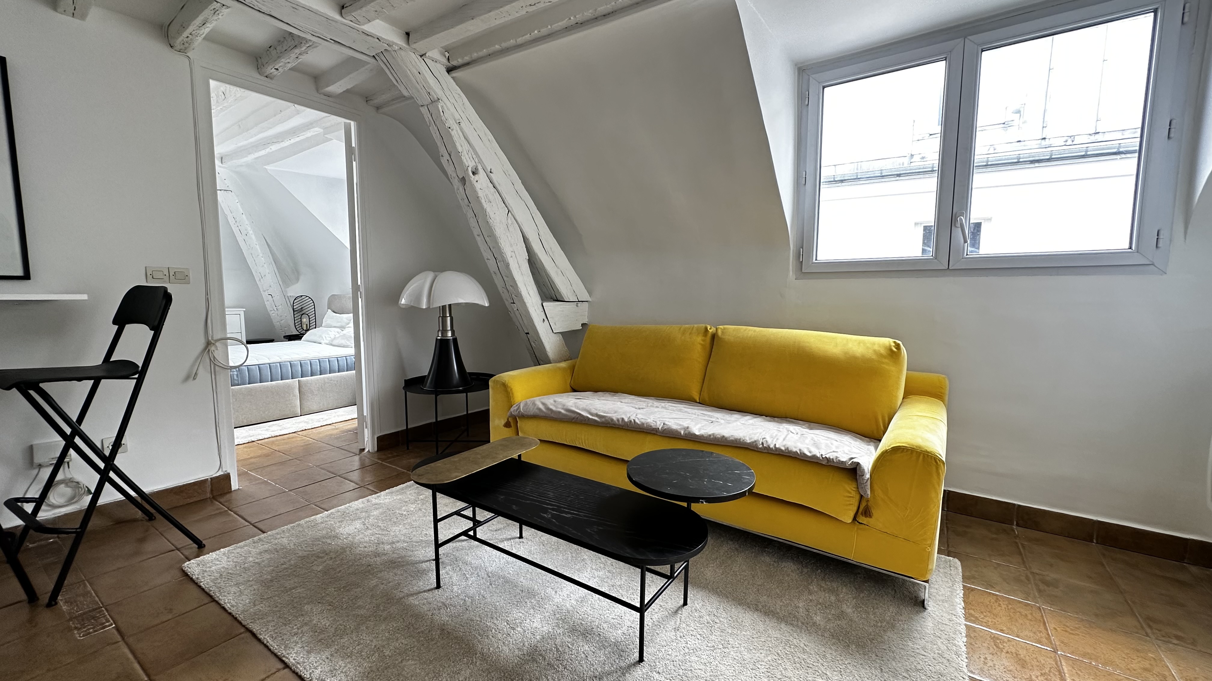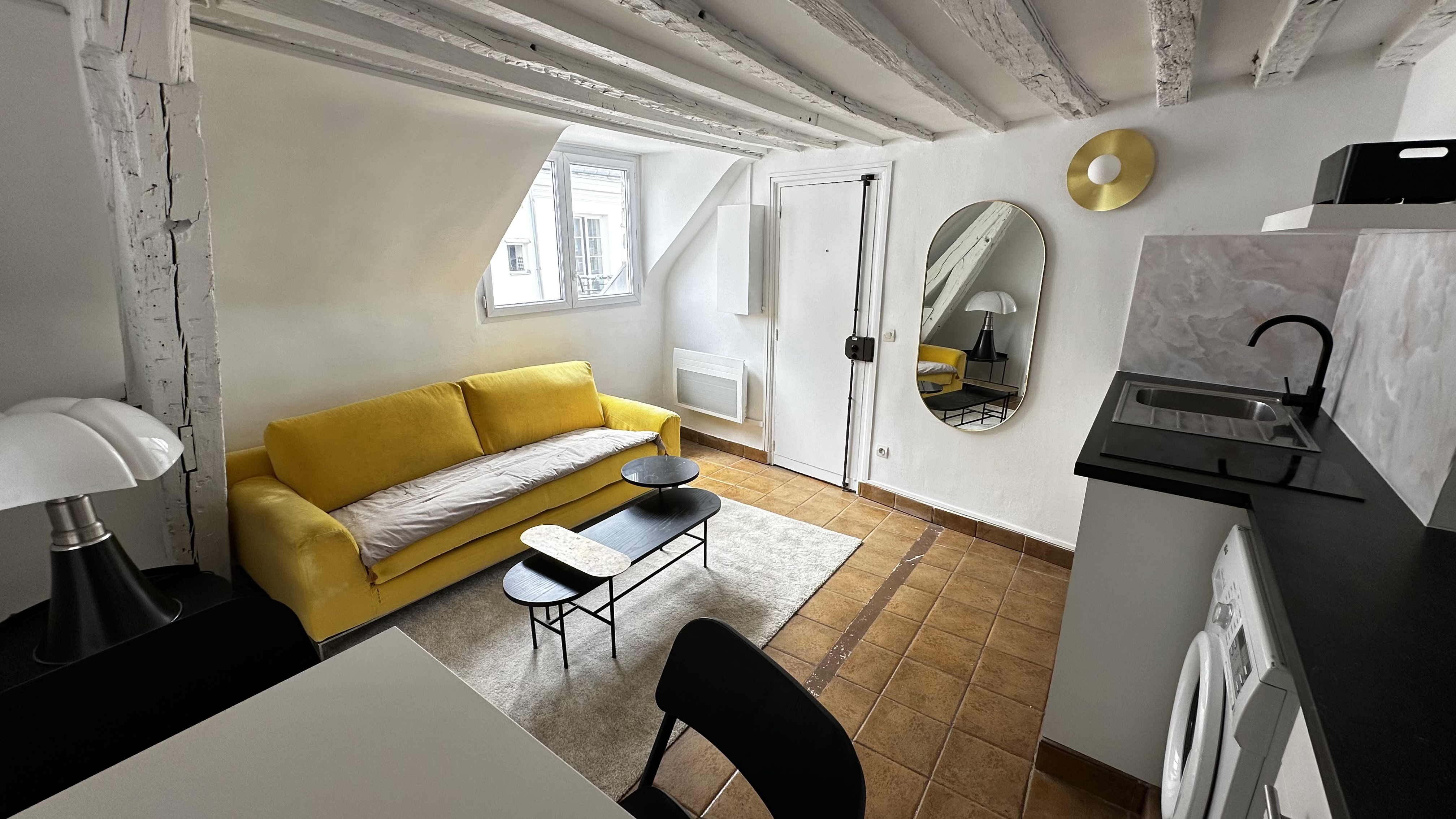 Visite sur RDV lundi 12 vers 12H30. Au cœur du 2ème arrondissement de PARIS, Rue Saint-Denis, métro Réaumur Sébastopol / Arts et Métiers. Au 6ème et dernier étage avec ascenseur (jusqu’au 4ème) , un appartement de 26,56m2 carrez, 32,11 m² au sol. Composé comme suit: Séjour donnant sur la rue Saint-Sauveur (Quasi piétonne) avec cuisine ouverte aménagée et équipée, une chambre avec dressing, salle d’eau et cabinet de toilette. Un balconnet d’un mètre carré accessible par quelques marches vous offrira une vue paisible et dégagée. Appartement libre immédiatement. Loyer : 1440 euros / mois - Forfait de charges : 110 euros / mois. Soit : 1550 euros / mois charges comprises. Honoraire de location charge preneur : 405 euros TTC.